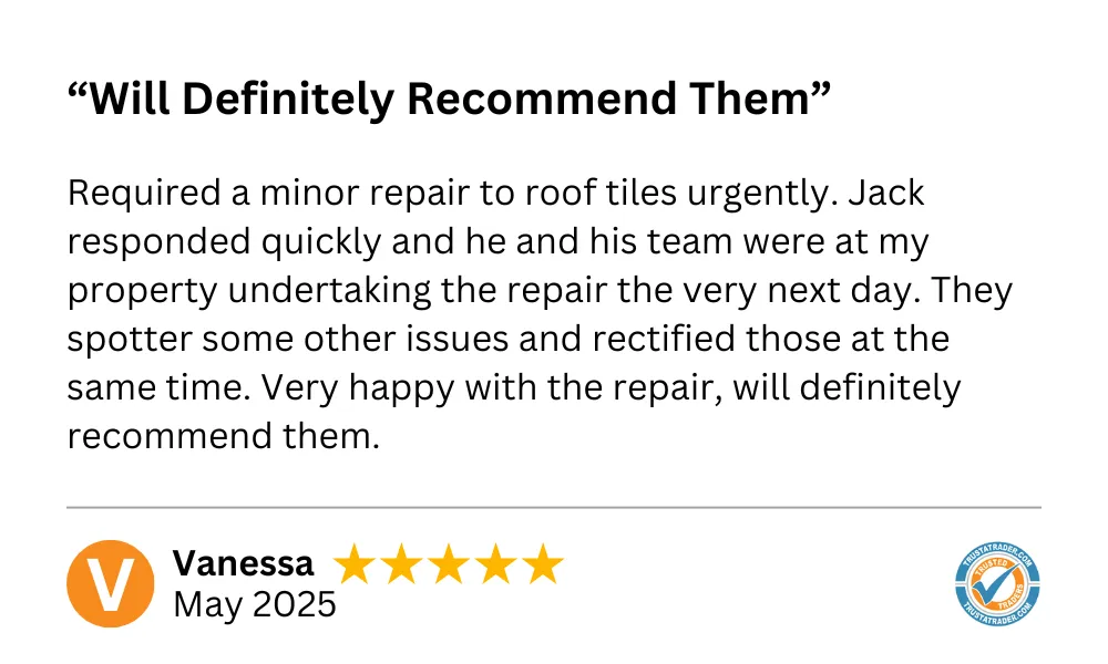 "Hi I'm Jack and I've been roofing in Buckinghamshire for over 12 years. I started this business with one goal - to give homeowners a straight, honest service without the hard sell or hidden costs.